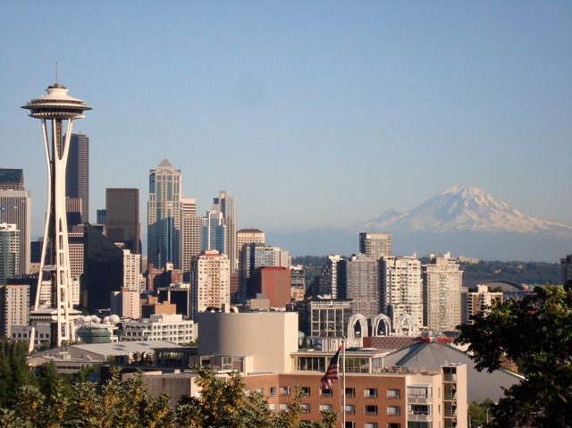 Milo and I are still having problems walking on the other/right-hand side of the sidewalk (aka, “pavement” to you English folks). I am also regularly being asked for directions from strangers when we’re out walking. Other than those two things, I guess we’re settling into Seattle life and life in the loft, which are both very nice with all the sunny weather we’ve had. I keep adding to the Milo on the iconic tour of Seattle photo album and just added ones with Milo and a parking-meter car, another with the Space Needle, Ride The Ducks, the Seattle Streetcar, and a view from Kerry Park on Queen Anne hill.