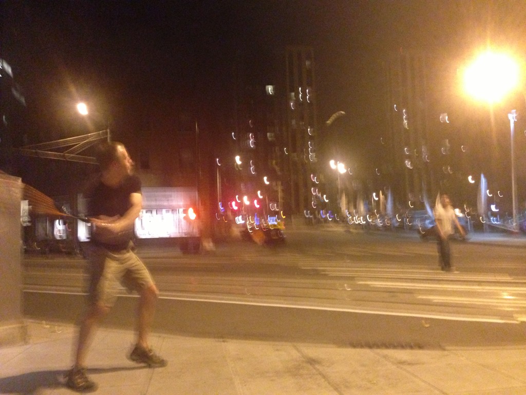 Never one to skip out on bashing some fruit, I said “let’s go” and we proceeded to spray ourselves with citrus. Yes, if you hit a lemon with a softball bat, it sprays all over you. Thankfully, I like smelling like lemons. Tanarin captured these shots of me as I covered Westlake Ave. with the sweet smell of lemon.