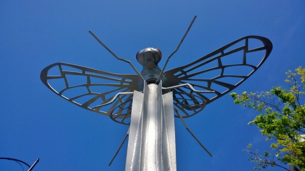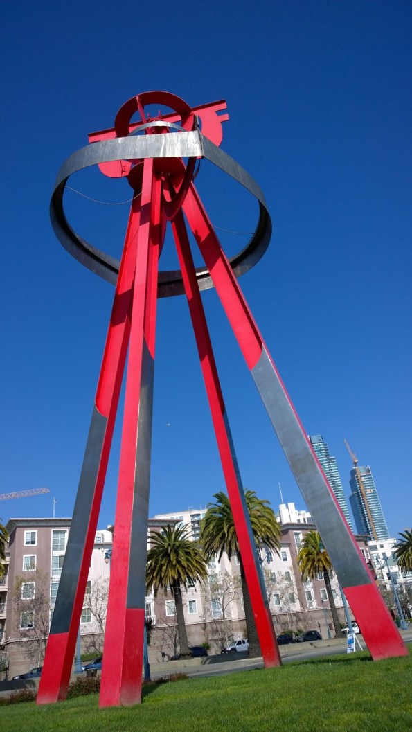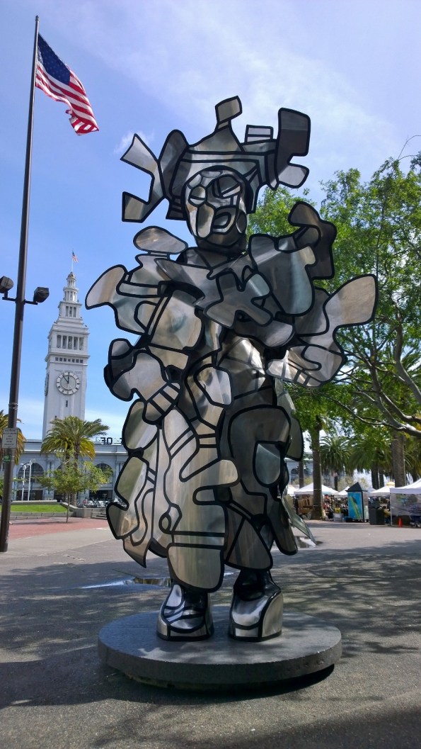 This is a sculpture of a man sitting. Near the new UCSF buildings.