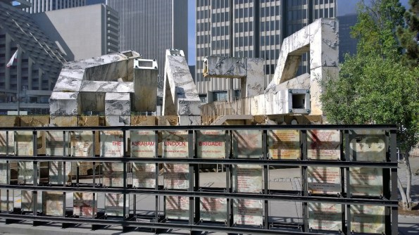 It looks like a building fell over, but it’s art along the Embarcadero in San Francisco.