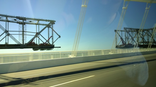 Something you don’t see every day: The demolition of a 1930’s bridge. The middle section was removed first, so there is a big gap between the east and west sections that you drive past while on the new bridge.
