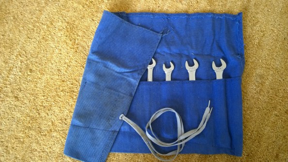 Years ago when I got my first set of wrenches (from my dad I suppose), my mom made these little bags to help organize them. I have one for metric and one for standard. I don’t keep much “stuff”, but these have lasted over the years because they keep the wrenches together and they don’t rattle around when carrying them.