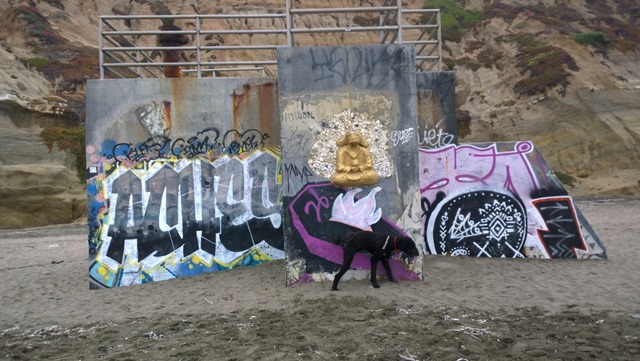 He must have been feeling extra bold today, since he even peed on the wall with the Dog Buddha.