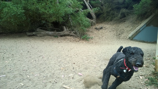Busby and I were at Ft. Funston today, which is a huge beach full of dogs, which is pretty much heaven if you’re a dog, or hell if you’re any other animal.