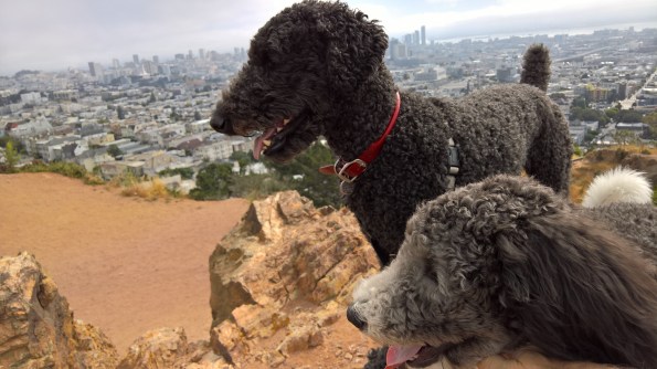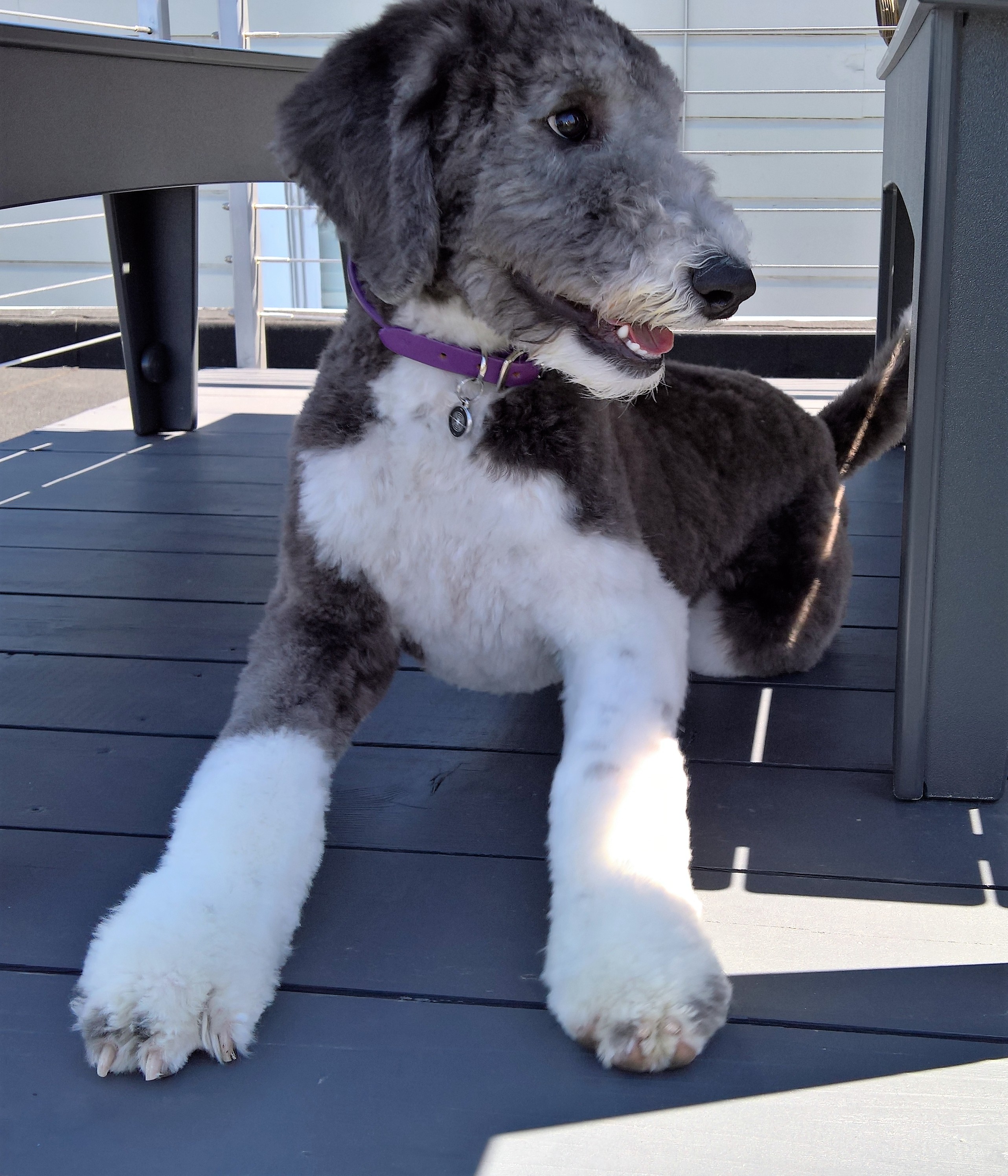 Piper doesn’t sit unless indoors with food involved, so she hasn’t mastered posing for photos like Busby has. What you don’t see is my arm holding her in place.