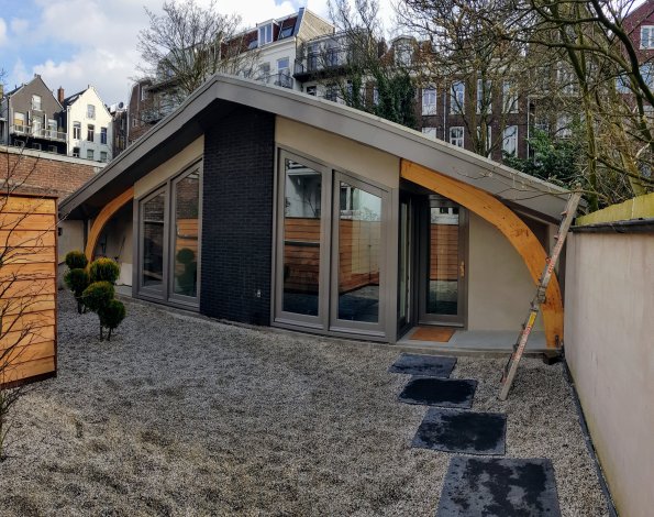 This is our new place in Amsterdam, tucked in between garden walls in the middle of the gardens (yards) of all of our neighbors. It is completely overlooked, but feels private at the same time, maybe because we don’t hear any street noise.