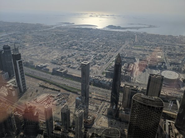 This is currently the tallest building in the world. The photos show Dubai and in the distance of one you can see The World Islands. I was on the 124th floor observation deck, which is indoors, and the floor below which is outside. I held my phone tight for those photos since I didn’t want to drop my phone 452 meters (1,483 feet)! I could have gone to the 148th floor too, but that was twice the cost, and it’s not like my view was blocked by anything.