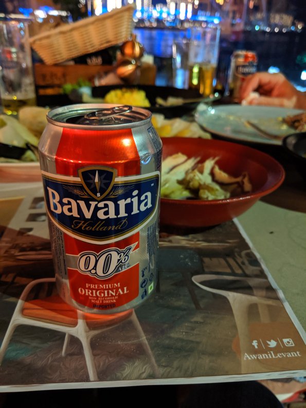 5. Ramadan: During the day you don’t eat if you’re observing Ramadan. But many restaurants are still open, but they are covered up or blocked off. This is so you can’t see people eating. But right before sundown, you can see employees ready and waiting for the sound that says it’s ok to eat. In a mall, I saw ice cream scoopers standing and waiting to take down the black coverings from the ice cream freezers and start working. Also, many restaurants don’t serve alcohol at this time; see the 0% beer which needed ice because the cans were warm.