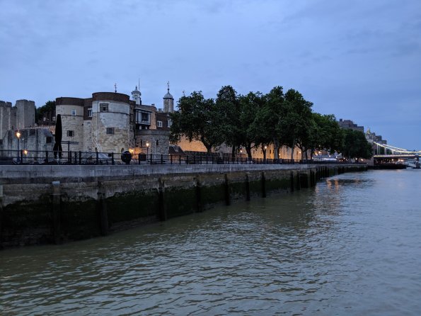 Ok, not really. But I am standing on a surfboard in front of the Tower Bridge. It was at a restaurant.
