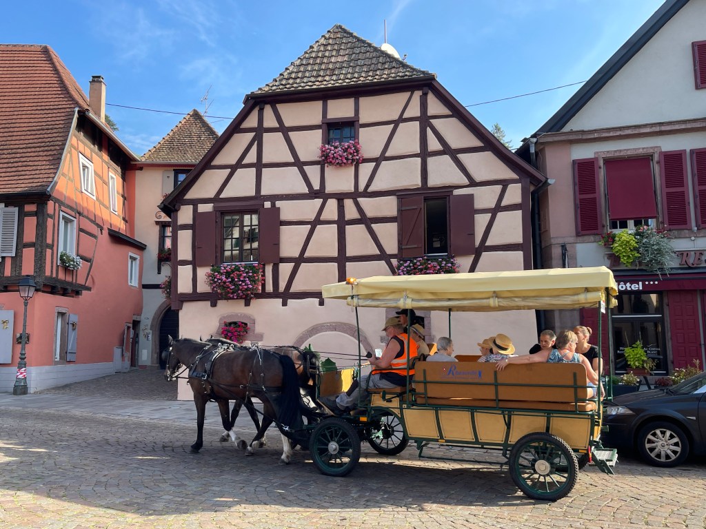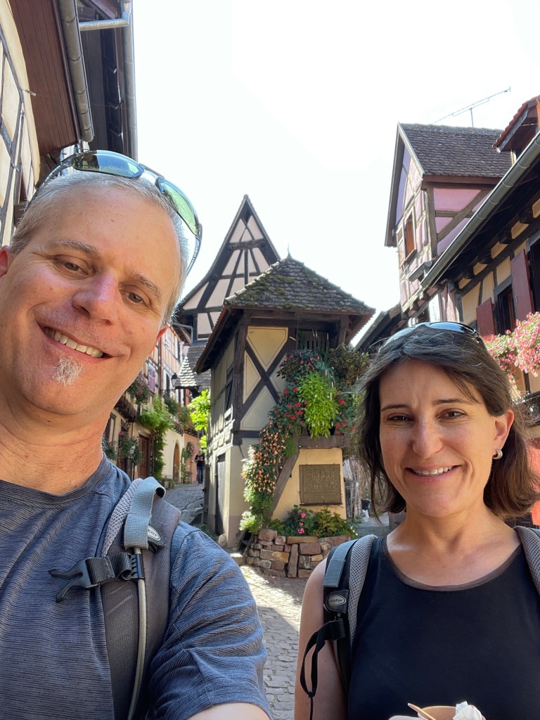 We have visited Eguisheim, which is a medieval village with preserved half-timbered houses, as are all of the towns we have been in this week: Riquewihr, Kaysersberg, Turckheim, and our home base of Colmar.