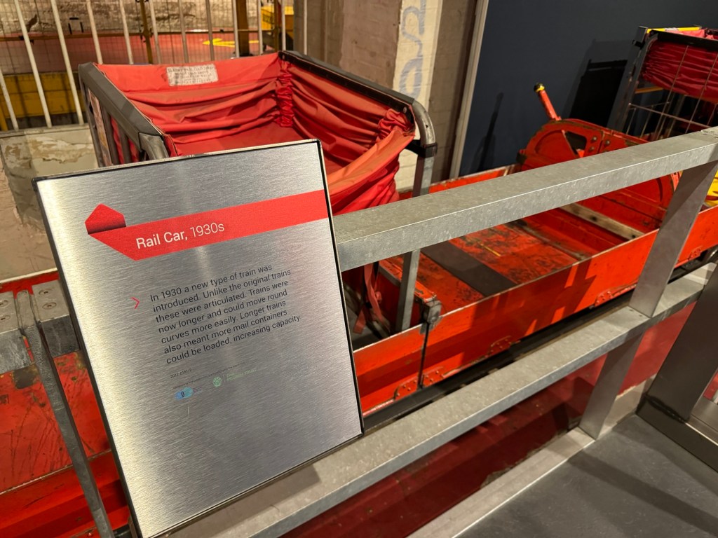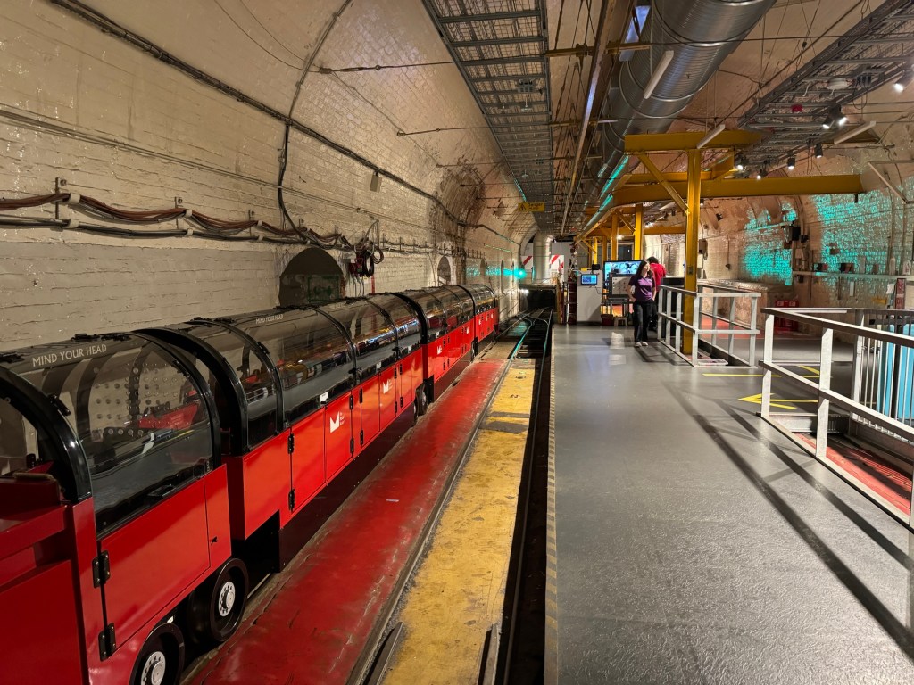 For about 100 years, there was a little train running under London to help deliver the mail, called the Mail Rail. It stopped running in 2003 and they’ve now created a small, people-friendly version that we rode on Friday.